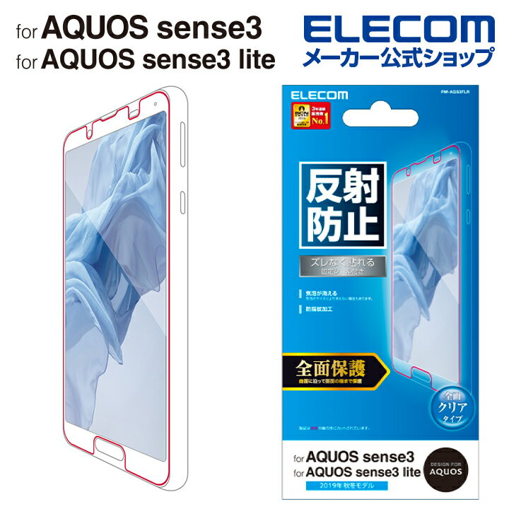 エレコム AQUOS sense3 用 AQUOS sense3 lite 用 フルカバーフィルム アクオス センス 3 センス3 スリー ライト SH-RM12 反射防止 透明 フルカバー PM-AQS3FLR