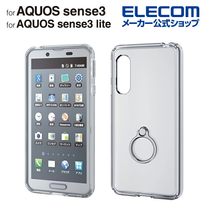 エレコム AQUOS sense3 用 AQUOS sense3 lite 用 AQUOS sense3 basic 用 ハイブリッドケース アクオス センス 3 センス3 スリー ライト SH-RM12 ケース カバー リング付 フォルティモ スマホリング シルバー PM-AQS3HVCR2SV