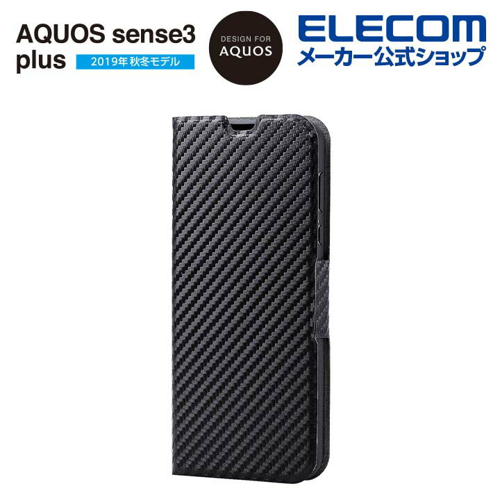 エレコム AQUOS sense3 plus 用 ソフトレザーケース 薄型 磁石付 アクオス センス3 プラス ソフトレザーケース 手帳型 マグネット カーボン調(ブラック) PM-AQS3PPLFUCB
